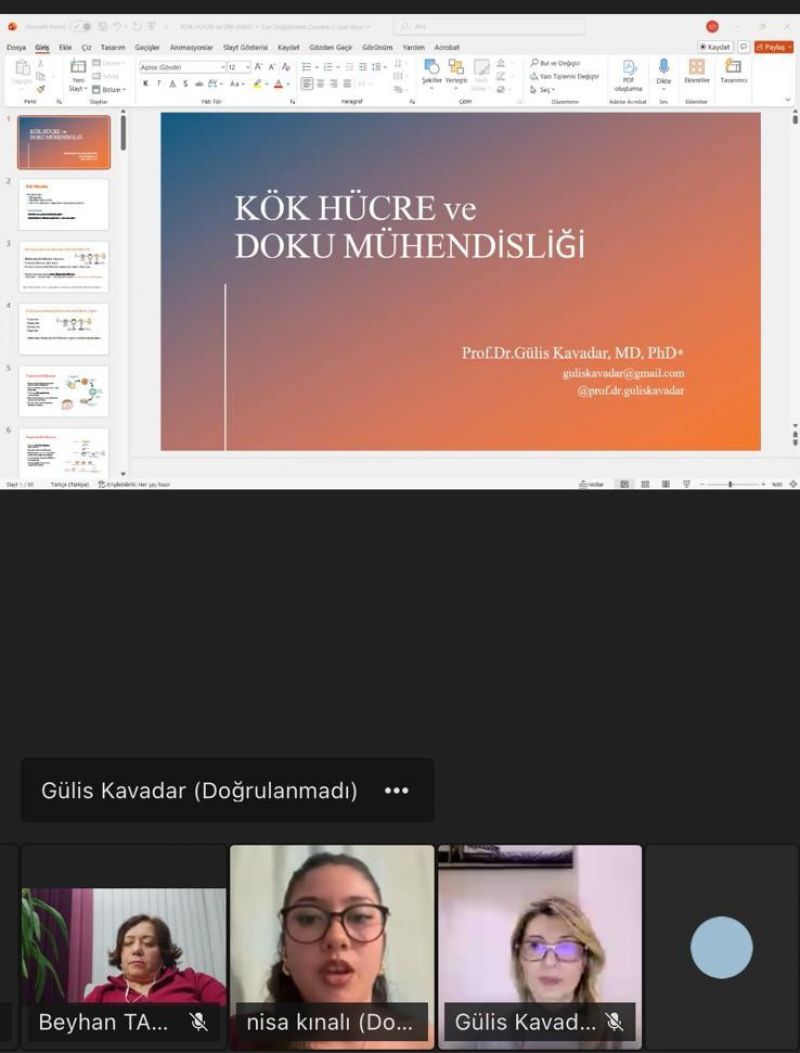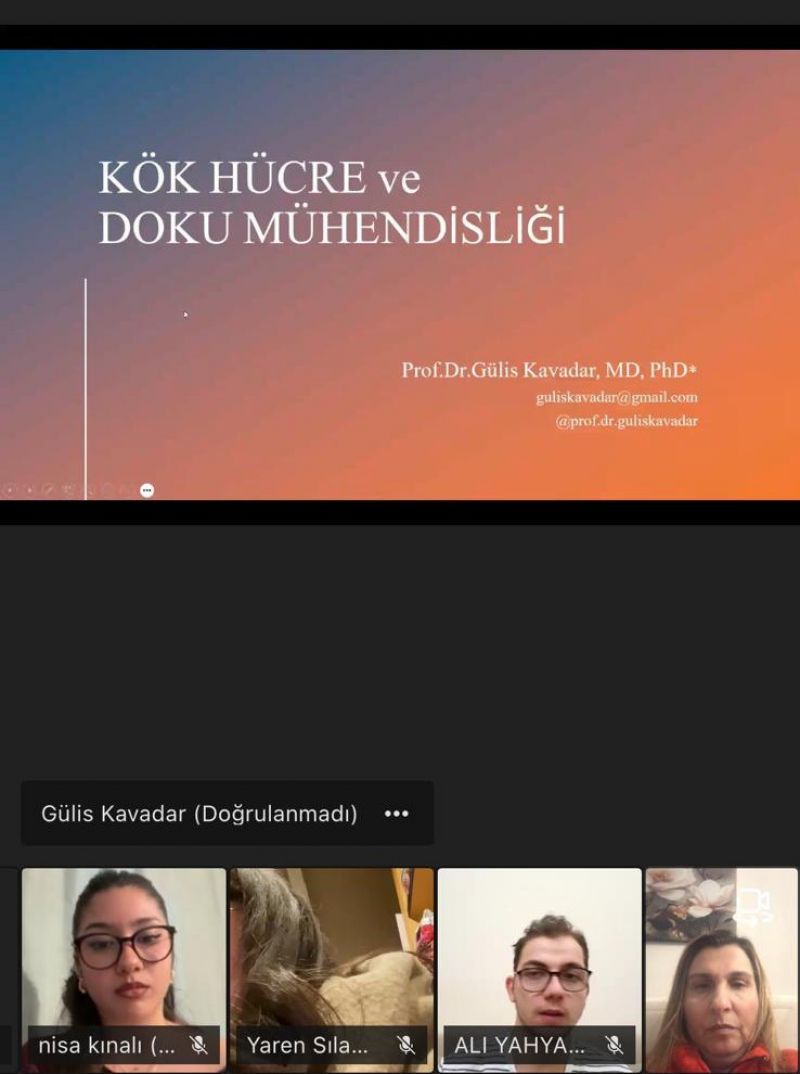Genetik Kulübü tarafından düzenlenen “Kök Hücre ve Doku Mühendisliği” konulu çevrim içi seminer, 4 Mart Çarşamba günü saat 20.00’de gerçekleştirildi. Seminere, İstanbul Sağlık ve Teknoloji Üniversitesi Tıp Fakültesi Fiziksel Tıp ve Rehabilitasyon Anabilim Dalı öğretim üyesi Prof. Dr. Gülis Kavadar konuşmacı olarak katıldı.