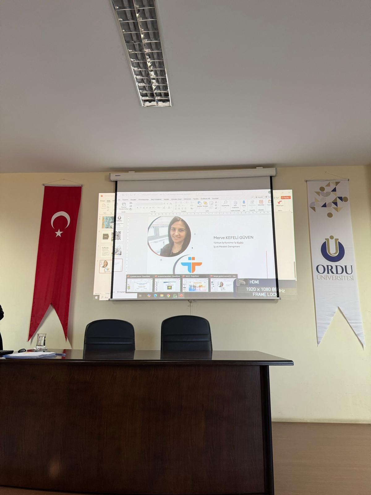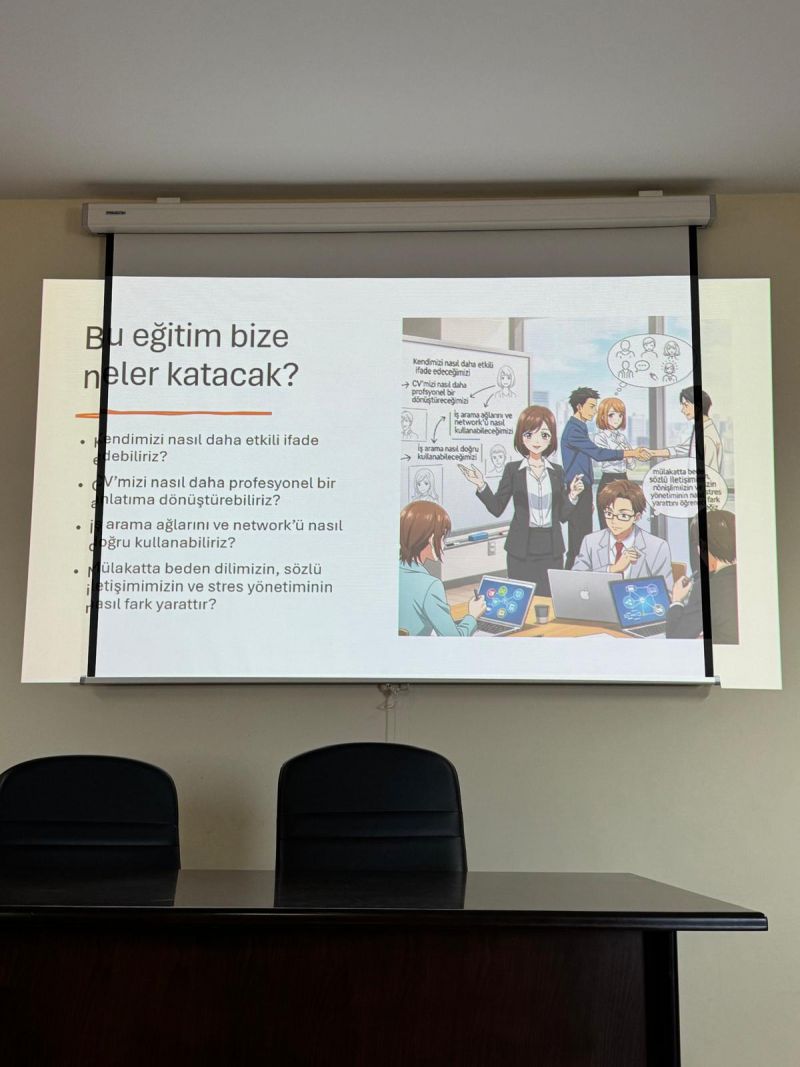 Ordu Çalışma ve İş Kurumu İl Müdürlüğü (İŞKUR) tarafından bölümümüz lisans ve lisansüstü öğrencilerine yönelik, 28 Kasım-2 Aralık 2025 tarihlerinde, Prof. Dr. Cemil YAPAR konferans salonunda, iş arama, C.V. hazırlama, iş görüşmelerinde mülakat teknikleri ve beden dili kullanımı konularında eğitimler verilmiştir.