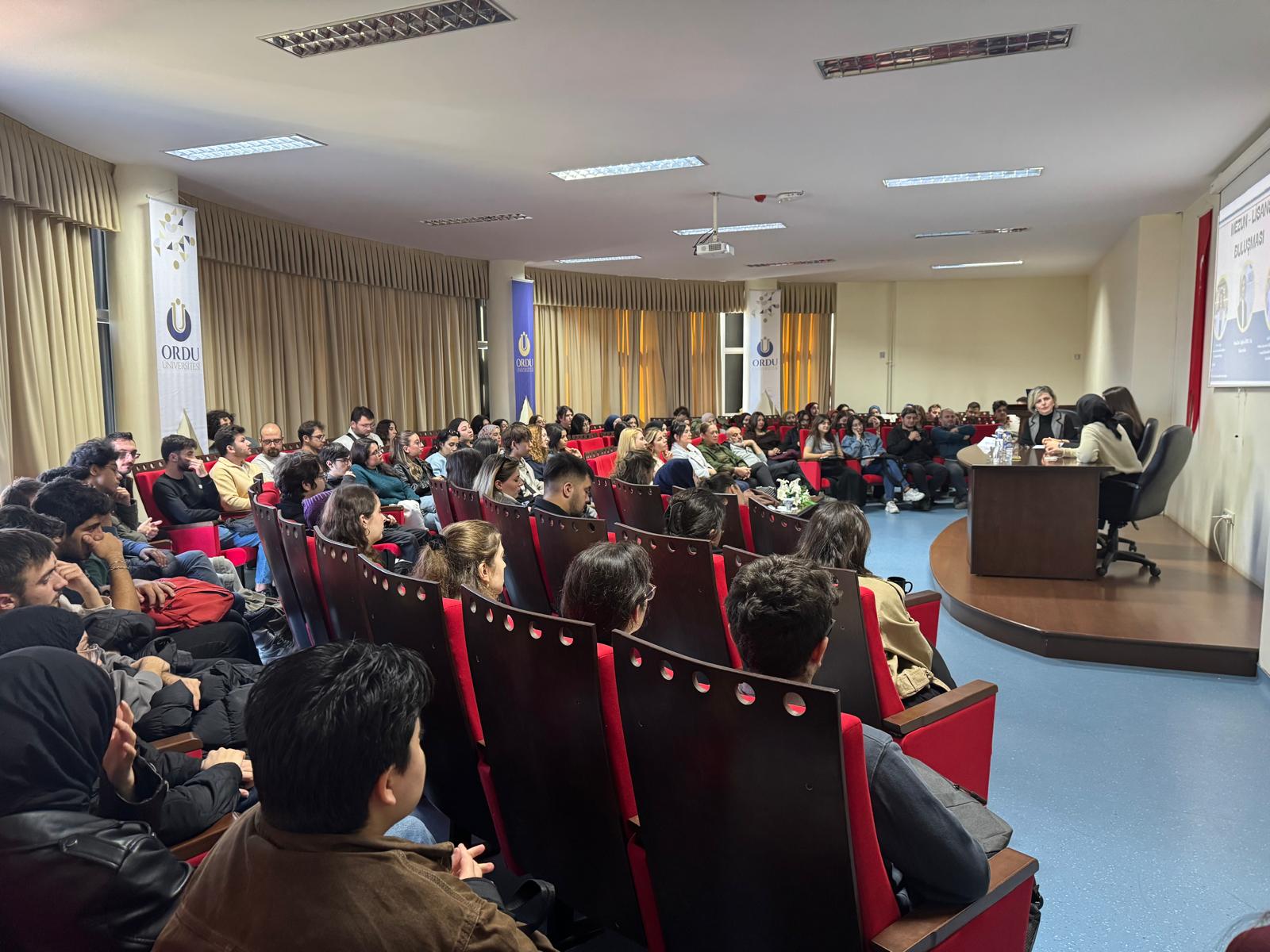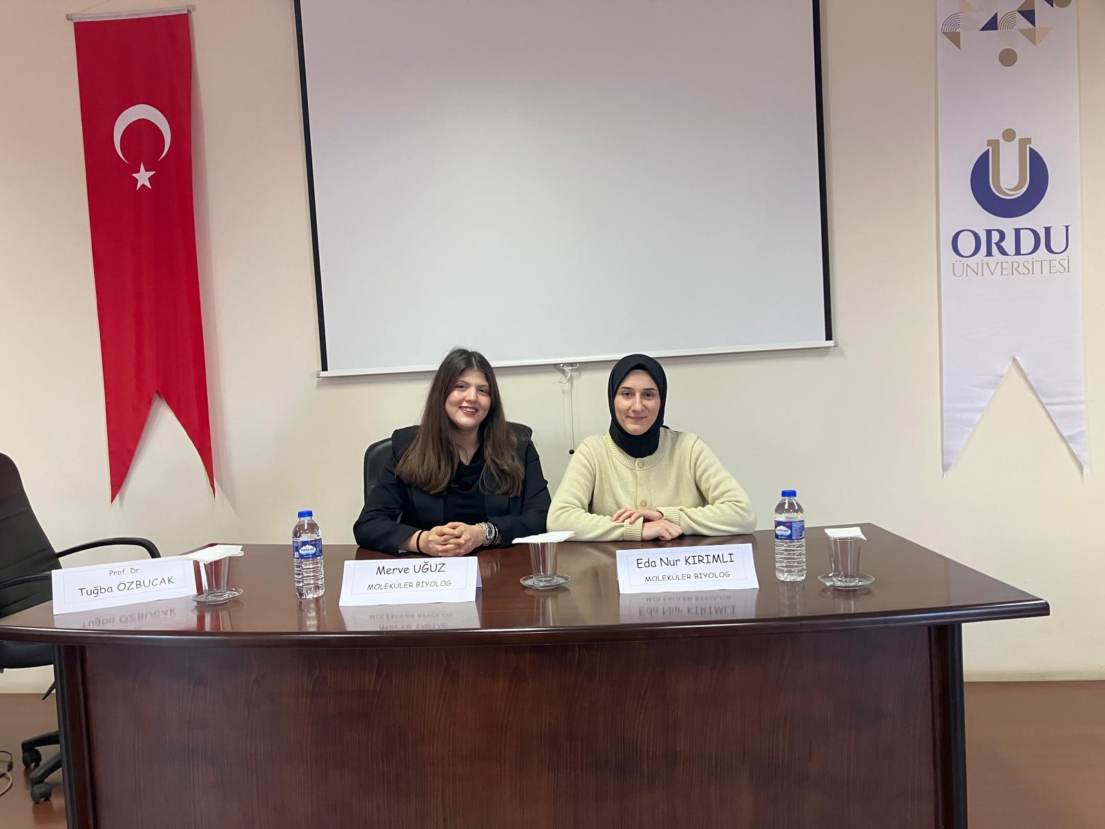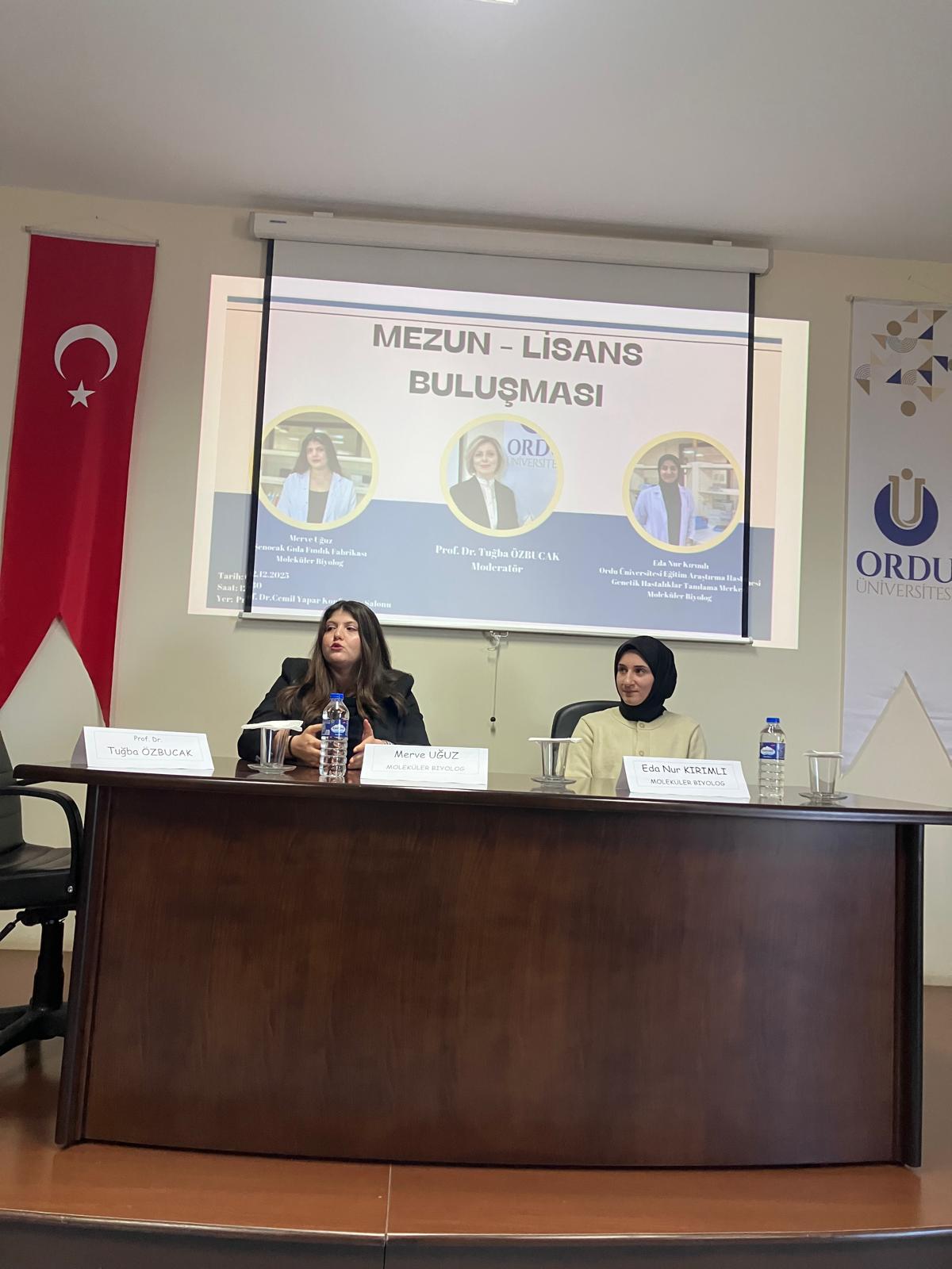 Bölümümüz mezunları Merve UĞUZ ve Eda Nur KIRIMLI’nın katılımıyla, Prof. Dr. Tuğba ÖZBUCAK’ın moderatörlüğünde 2 Aralık Salı günü saat 12.30’da Fen-Edebiyat Fakültesi Prof. Dr. Cemil YAPAR Konferans Salonu’nda “Mezun Buluşması” etkinliği gerçekleştirilmiştir. Mezunlarımız, eğitim sonrasındaki iş deneyimlerini öğrencilerimizle paylaşarak kariyer süreçlerine yönelik değerli bilgiler sunmuşlardır.