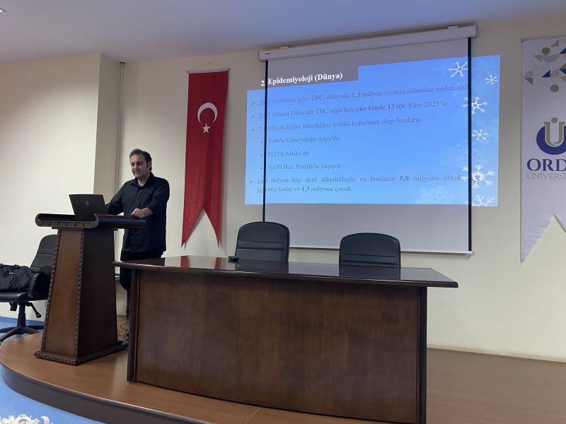 Ordu Halk Sağlığı Laboratuvarı’nda görevli Dr. Biyolog Bülent KAYNAK, Fen-Edebiyat Fakültesi Prof. Dr. Cemil YAPAR Konferans Salonu’nda “Küresel Bir Sağlık Sorunu: Tüberkülozun Bugünü ve Geleceği” başlıklı bir seminer vermiştir.
