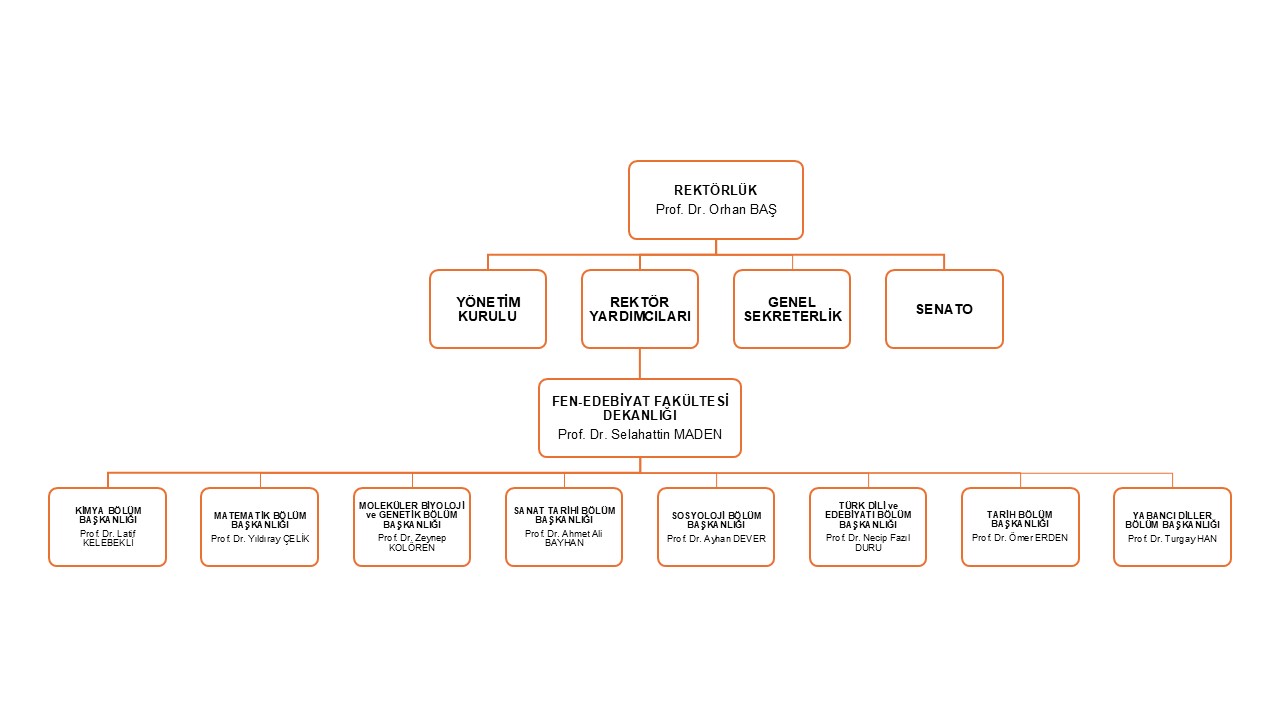 Moleküler Biyoloji ve Genetik Bölümü'nün fakülte ve üniversite üst yönetimiyle olan yönetimsel ilişkisi organizasyon şeması
